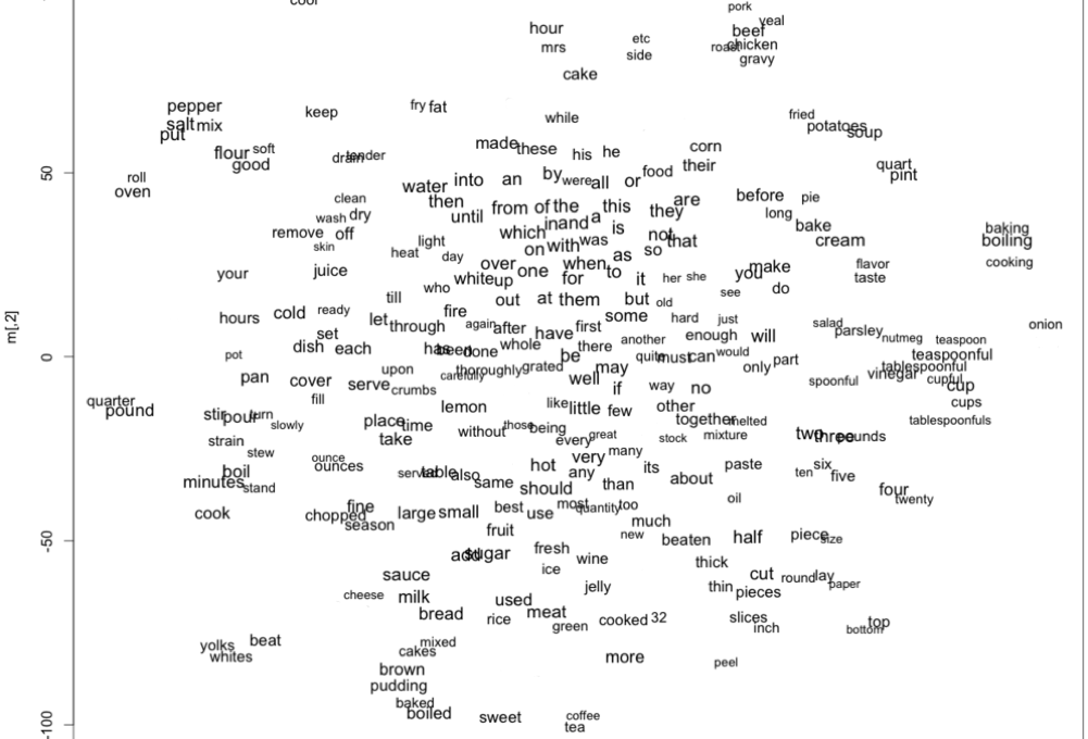 The concept of embeddings goes hand-in-hand with categorical variables. Individual words in an aerospace related social media document can be considered “values” or categories of a “text” variable. The analyst gets to choose the number of dimensions in semantic space along which the words will be placed. This means each word gets an embedding vector of N dimensions and is placed inside an N-dimensional semantic space. Figure 2 shows an example of word embeddings (albeit not aerospace words), visualized in a 2-dimensional semantic space. The clustering of words in this space becomes key in identifying, relating, and analyzing the nature of the text. The usefulness of word embeddings was first described by Collobert and Weston (2008).
